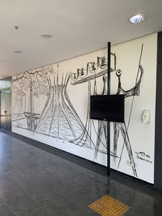 A composição intercala monumentos de Brasília encimados pelo Ipê, todos representados com bastante expressividade.